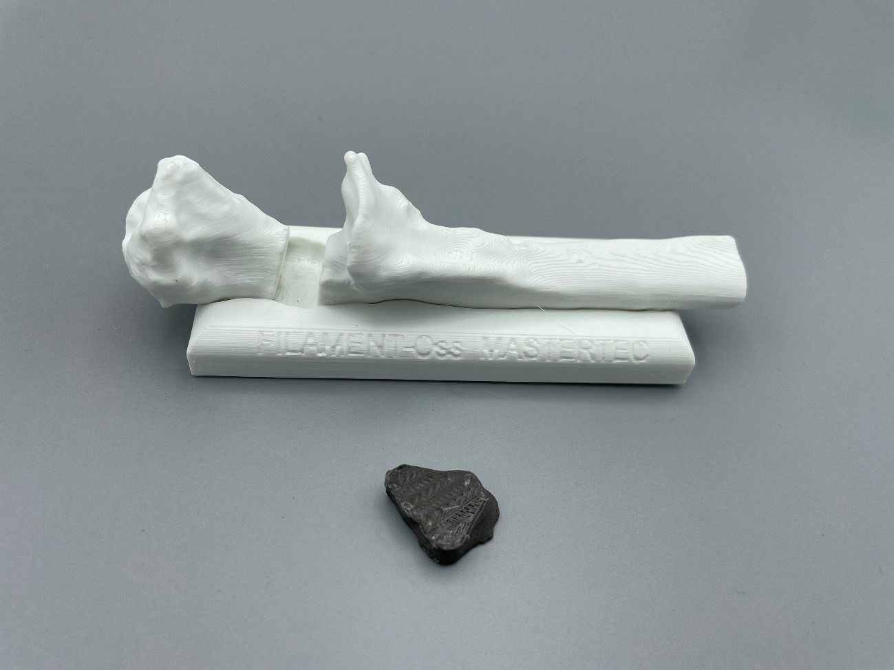 A continuación, se describe una aplicación directa de un filamento de esta clase, el filament-Oss, osseoinductivo. Un filamento polimérico biodegradable con fases bioactivas muy dispersas (TCP, HAp, Mg, etc…) en su interior. Ideal para impresiones 3D de regeneración personalizada de huesos y tejidos.