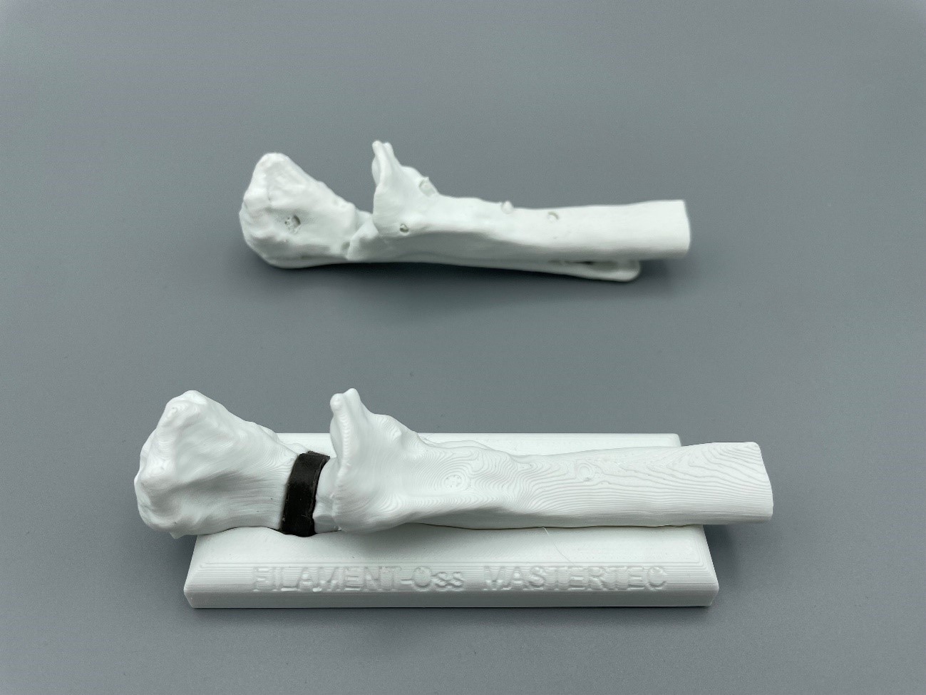 En este caso, se utilizó para poder realizar la impresión 3D con este filamento biodegradable, un equipo Makerbot Method LABS, ya que puede imprimir filamentos 3D experimentales y avanzados en un entorno controlado, permitiendo una gran precisión en los acabados, necesaria en impresiones 3D para aplicaciones médicas. De esta manera, el filamento-Oss se aplica en este caso como una solución de injerto después de la eliminación de una parte del codo de un paciente. En este proceso se va a poder observar como para aplicaciones de este tipo es tan importante la materia prima que se utiliza como el proceso de fabricación controlado.